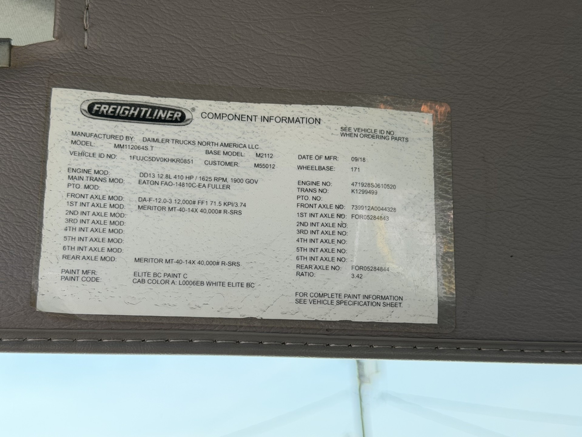 VIN: 1FUJC5DV0KHKR0851
